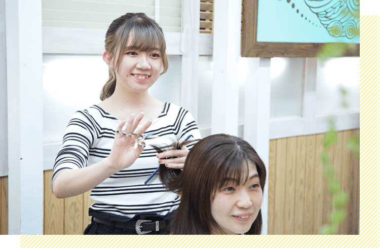 毎日サロンで働けることが、とても勉強になっていますが、専門学校にも通えるシステムがあります。現場で得る経験と、学校で学ぶ知識。両方行うこと(結構大変ですが)で、1日も早く一人前となって、お客様に喜んでもらえる美容師になりたいと思っています。